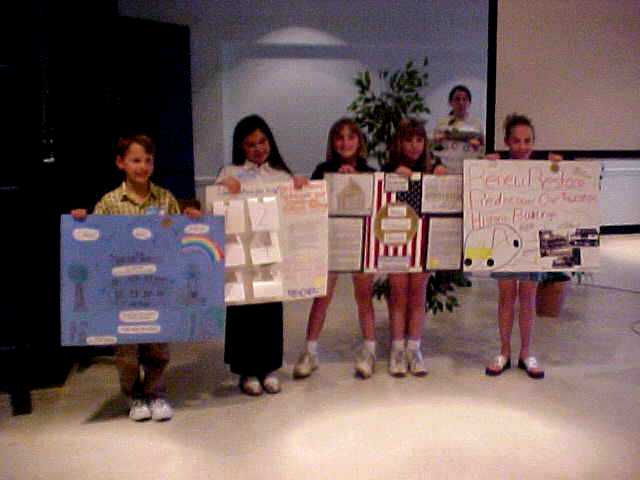 (Left to Right) Jonathan Zeidler from Hillcrest Elementary, tied 3rd prize Morgan McCredie from Churchville Elem. 1st Prize, Alexandra and JamieLyn Mangold from Richboro Elementary, 2nd prize, Ashley Wright from Hillcrest Elementary, tied 3rd prize. |