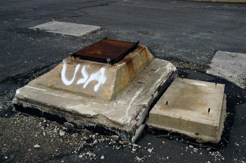 Elevator Doors Looking North. The missiles were stored below in the magazine and elevators moved them up from below. The doors were then closed before the above ground launch. |