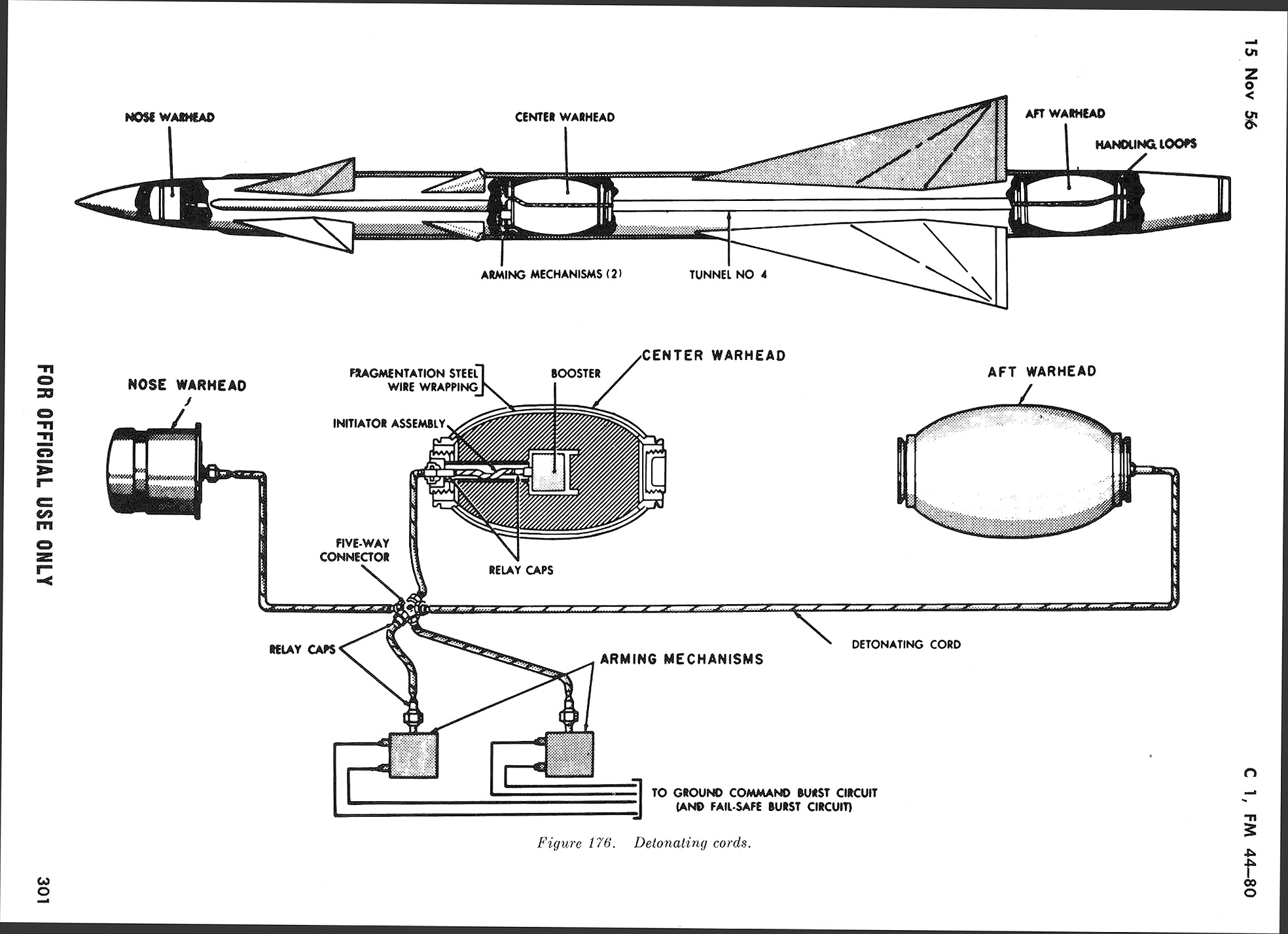 | A drawing of the warheads and detonation systems in the Ajax missile | |